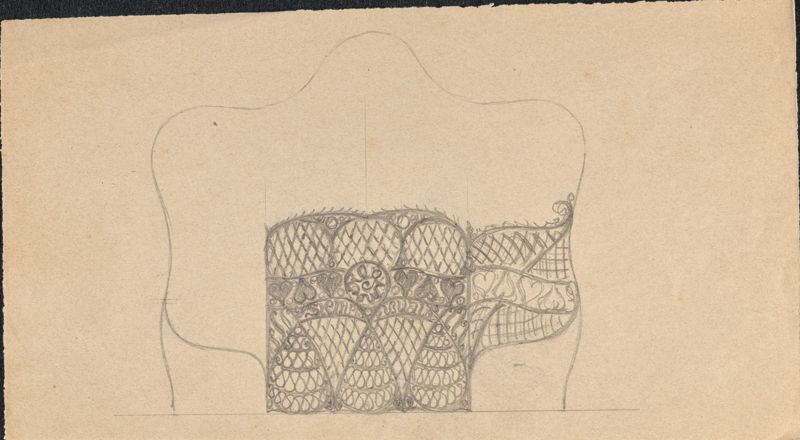 Dibuix de la portalada en ferro de l'entrada principalde la Finca Miralles