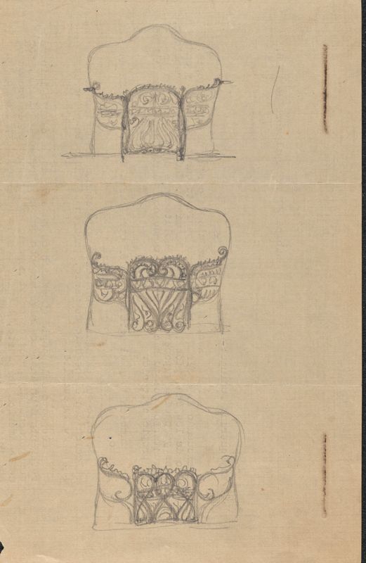 Tres esbossos de la portalada en ferro de l'entrada principalde la Finca Miralles