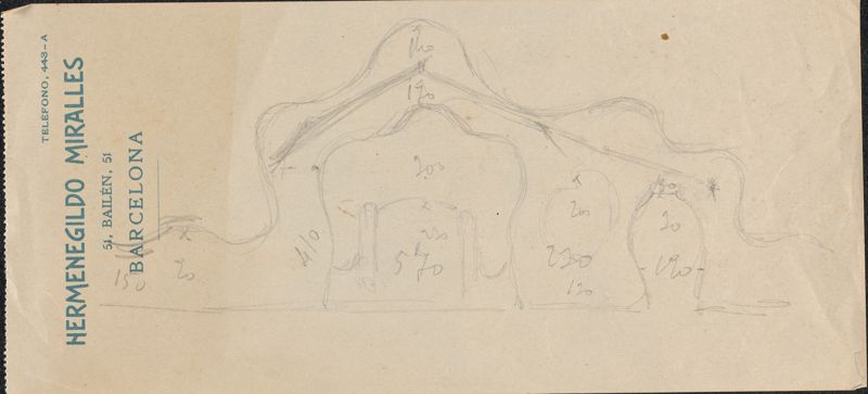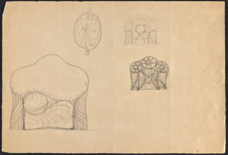 Diversos esbossos de la portalada en ferro de l'entrada principalde la Finca Miralles